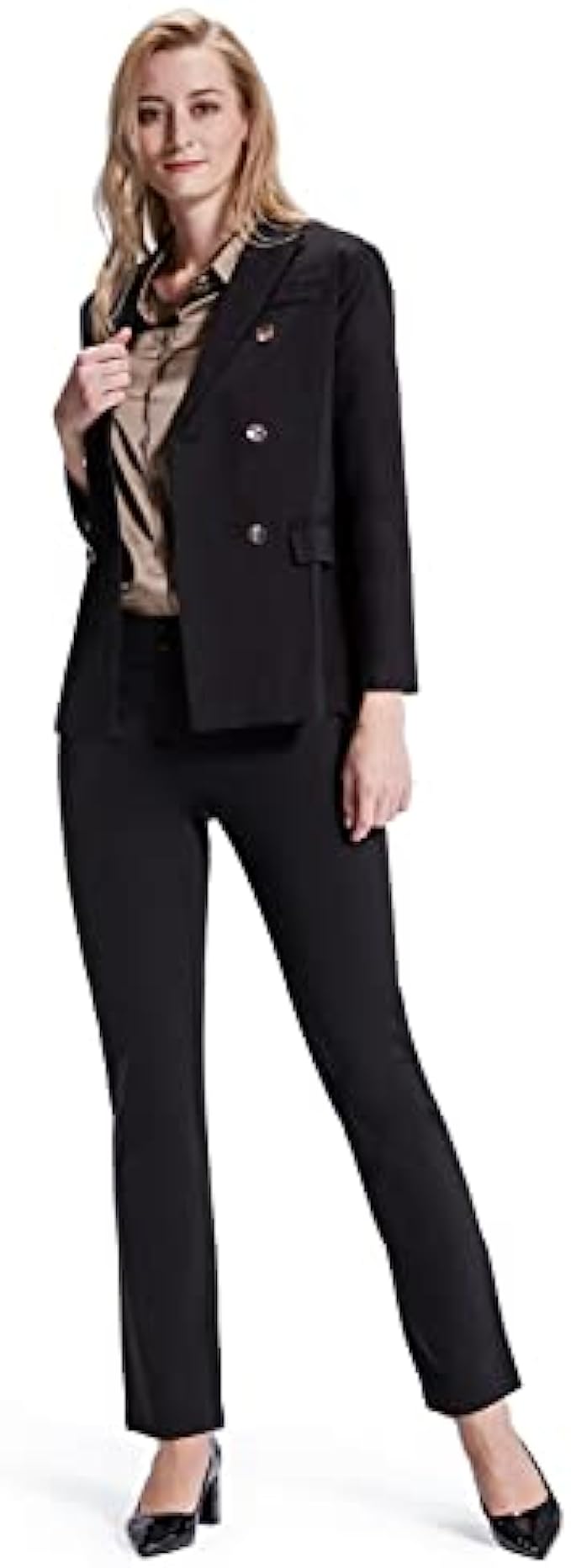 Bamans Dress Pants for Women Straight Leg Stretchy Work Pants Pull-On Business Casual with Pockets
