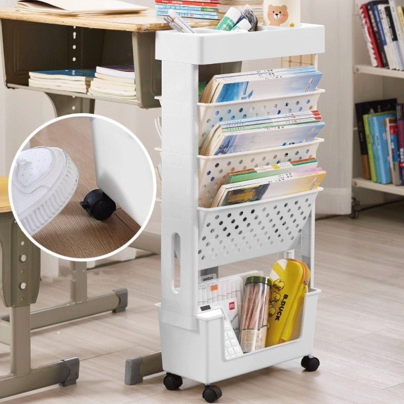 Movable Bookshelf Book Storage Shelf Side Table with wheels Student Book Desk Bookshelf Office Desk Bookshelf