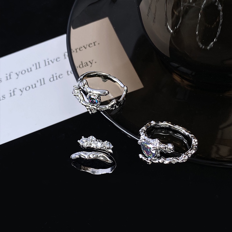 YEEZII 11pcs/set Fashion Y2K Adjustable Oil Dripping Snake Bead Ring Set Resin Butterfly Twist Ring Accessories Jewelry