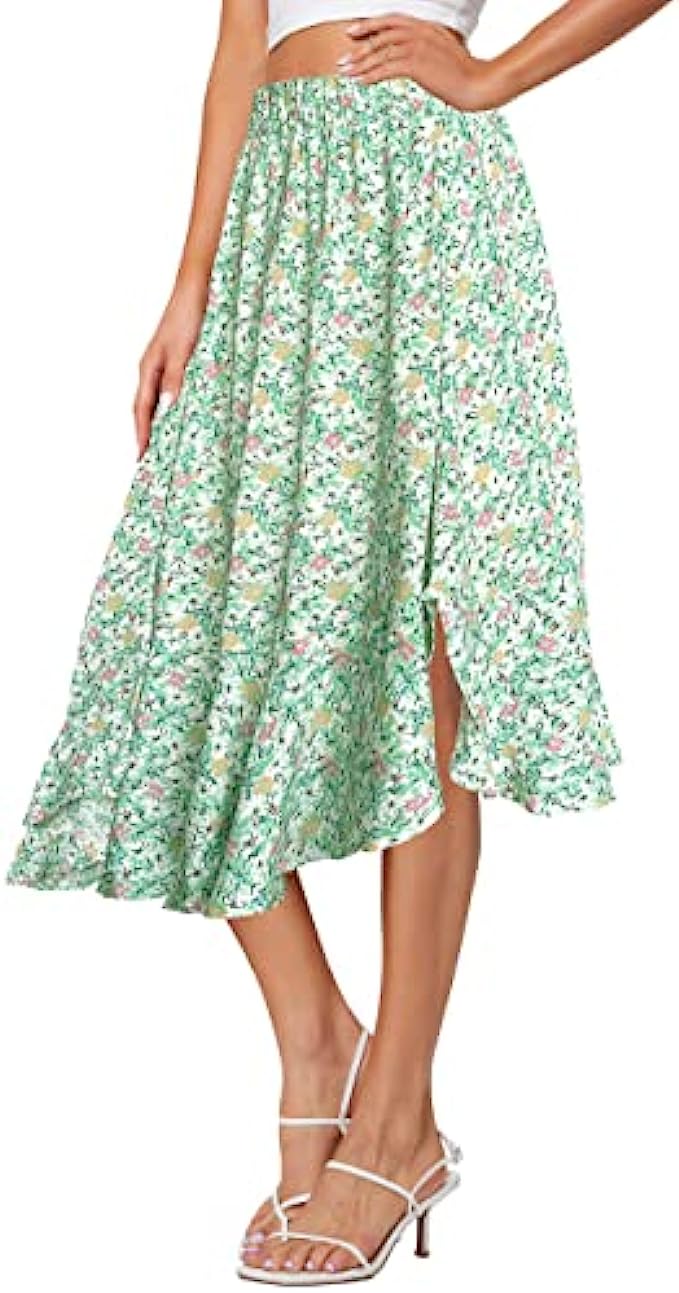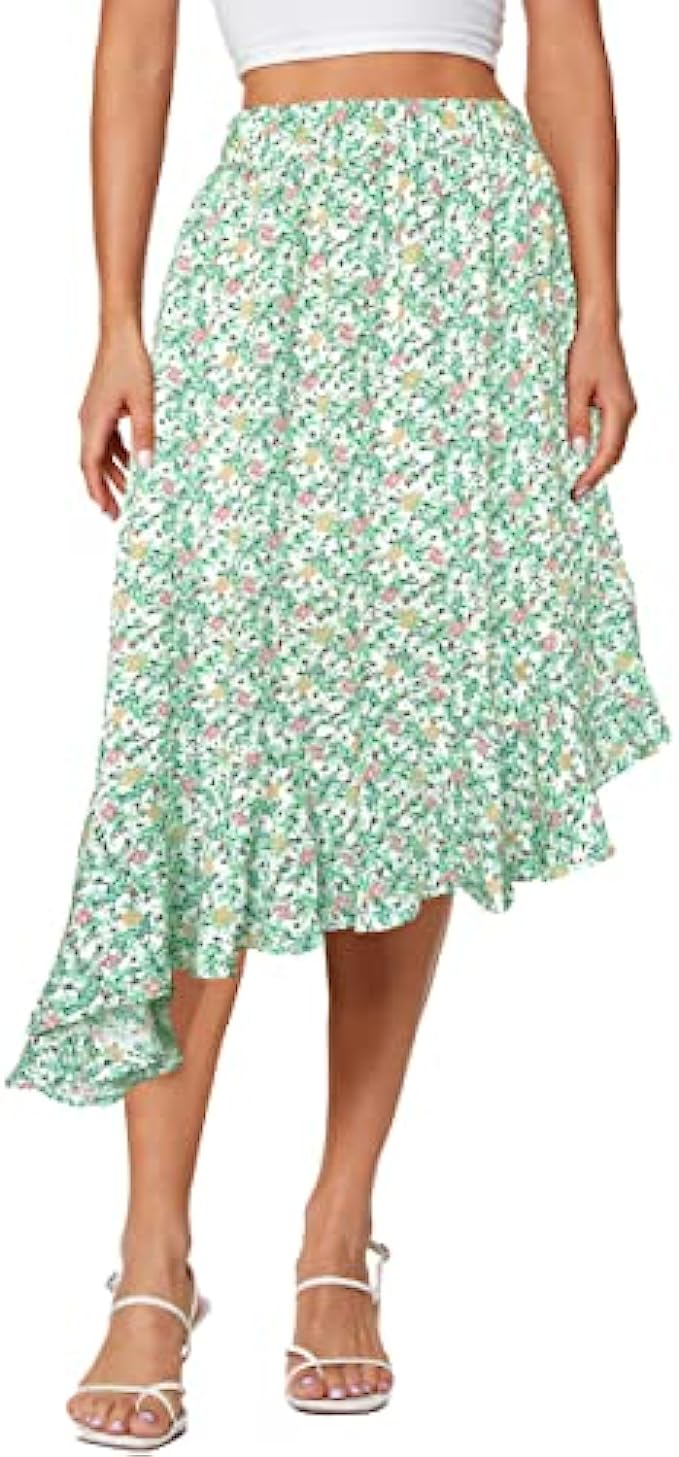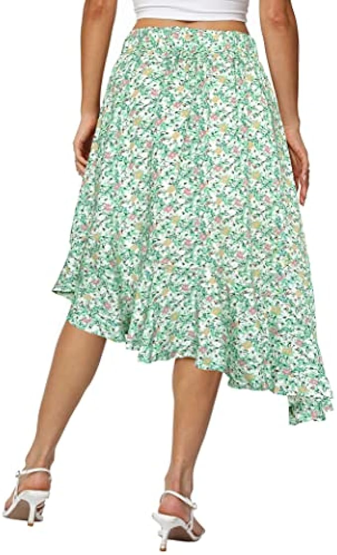 Afibi Women's Boho Floral High Waisted High Low Asymmetric Hem Midi Long Skirt