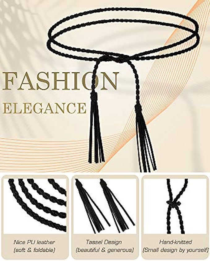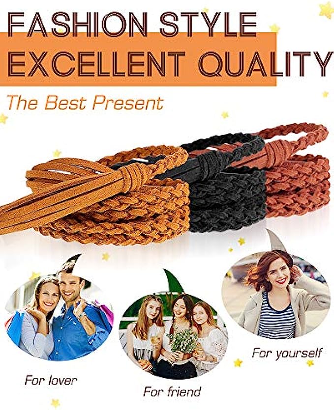 • Package contents: there are 3 pieces of tassel rope skinny belts, available in 3 colors, namely black, brown and khaki, which are stylish and not easy to be out of date, the quantity is also enough for you to wear and replace in daily life